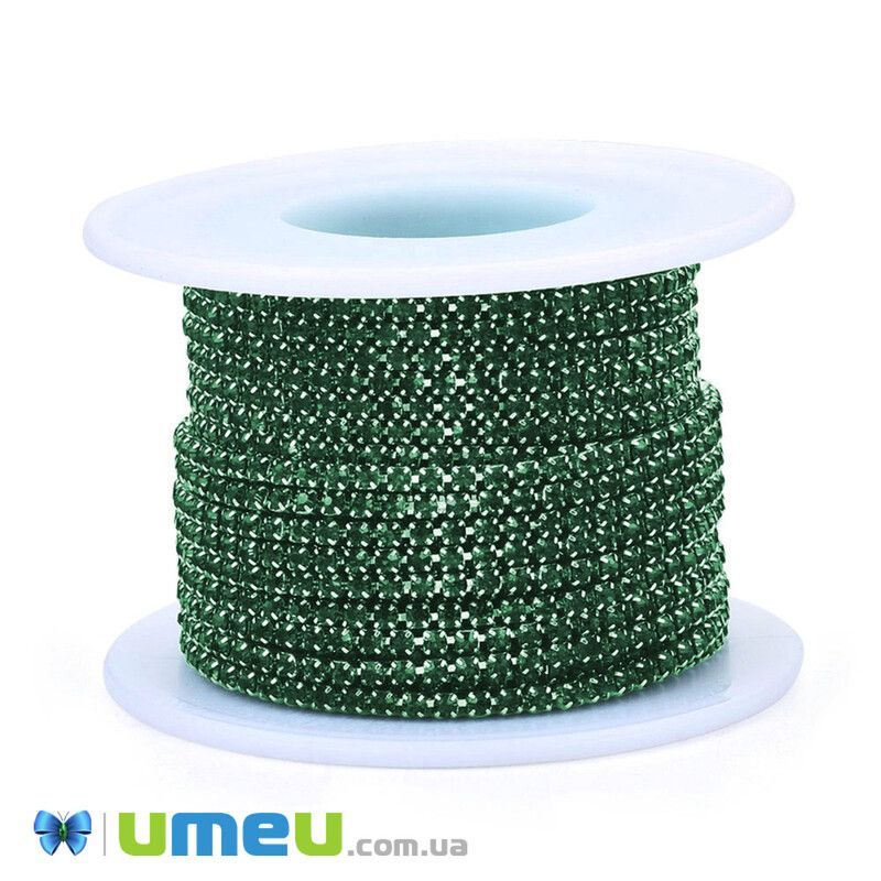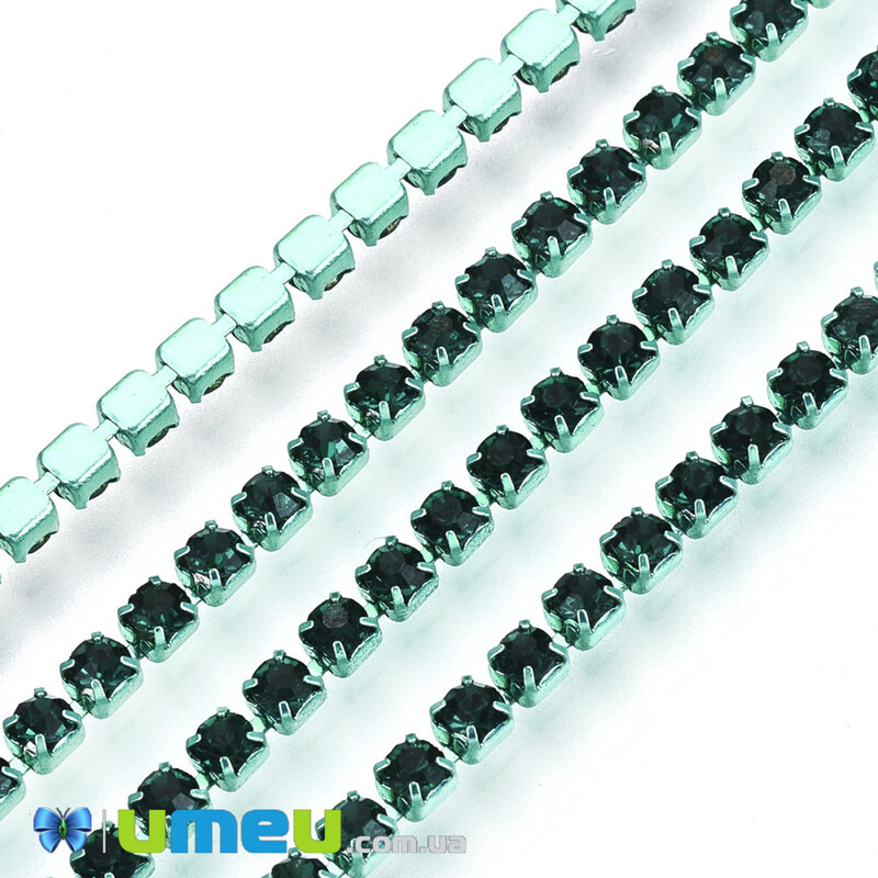 Стразовая цепь SS6 - 2,0 мм, Зеленая, Стразы стеклянные зеленые (ZEP-043003) / 1 м