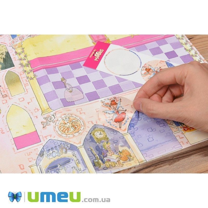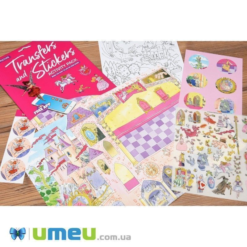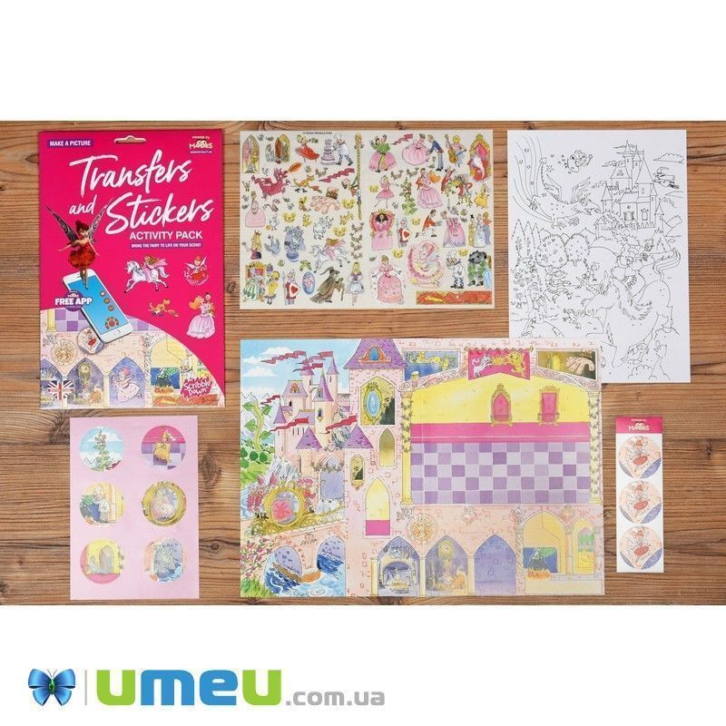 Большой набор переводных наклеек с тематическим изображением всех жителей сказочного королевства,среди которых королевская семья и их свита, добрые феи, единорог, чудовище и другие. Главный персонаж - девочка, которая превращается в принцессу.