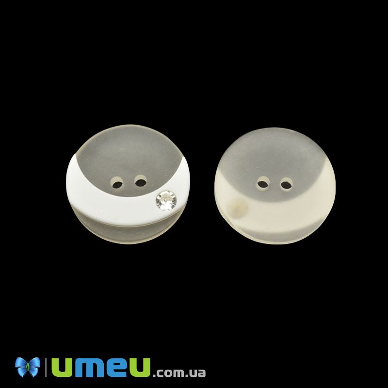 Пуговица пластиковая Круглая со стразом, 24 мм, Кремовая (PUG-046410) / 1 шт