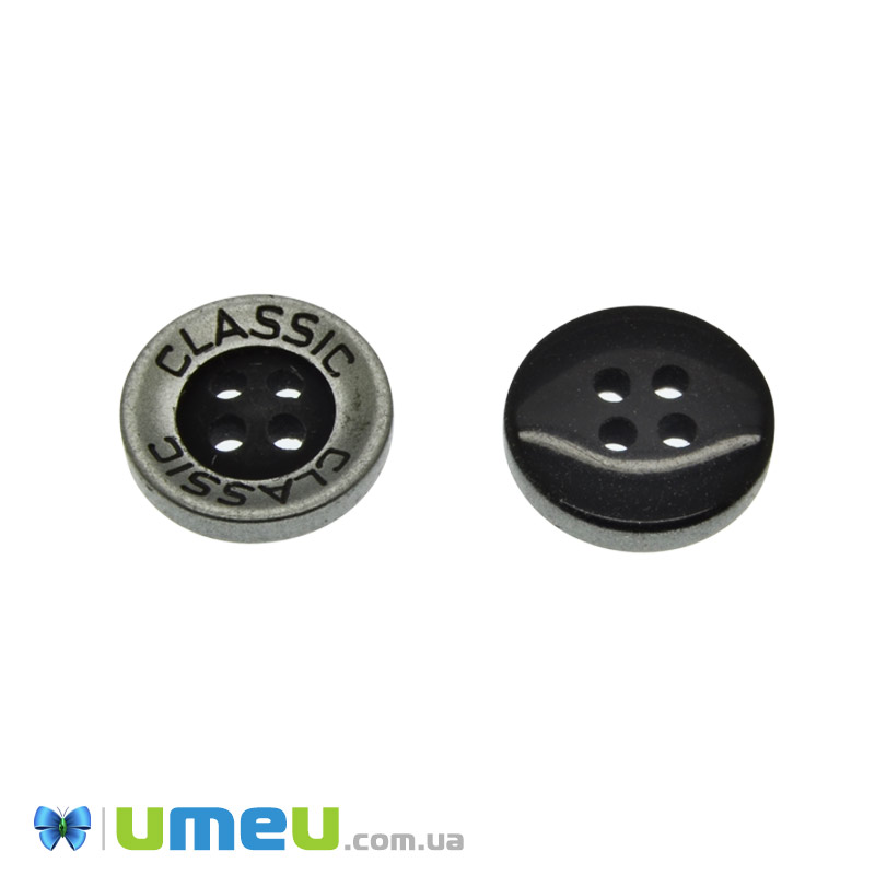 Пуговица пластиковая Круглая Classik, 20 мм, Черно-серая (PUG-046660) / 1 шт