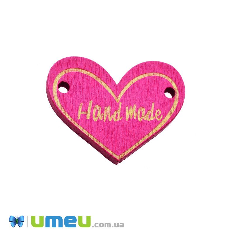 Бирка деревянная Сердце «Hand made», 30х23 мм, Малиновая (PUG-047774) /