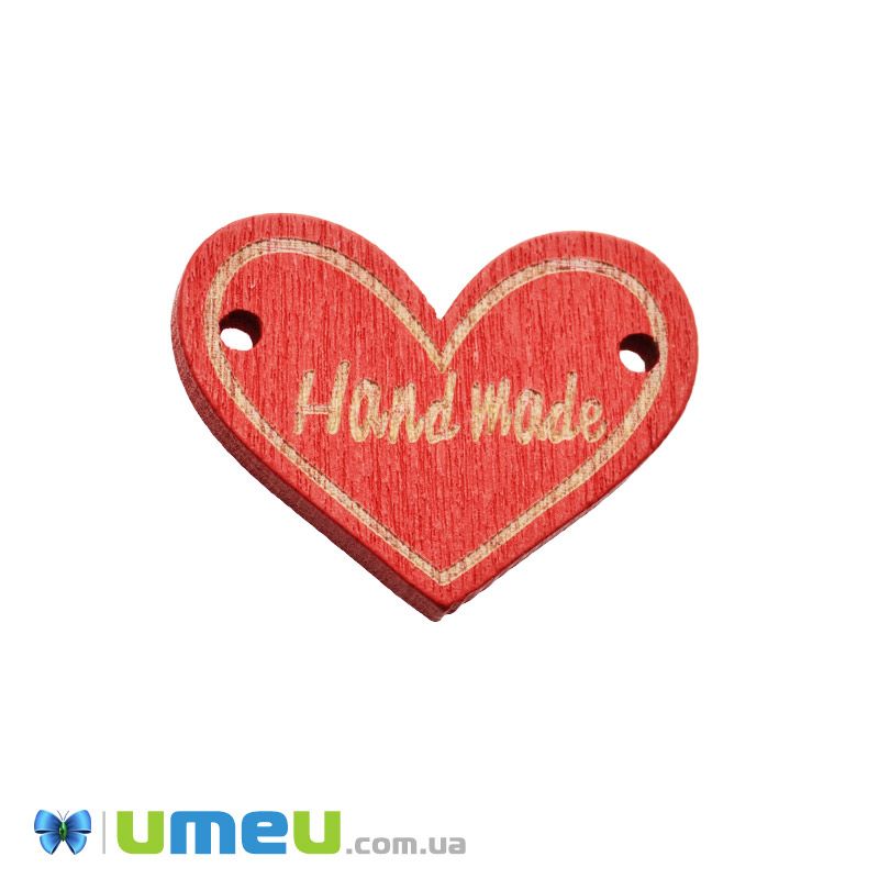 Бирка деревянная Сердце «Hand made», 30х23 мм, Красная (PUG-047777) /