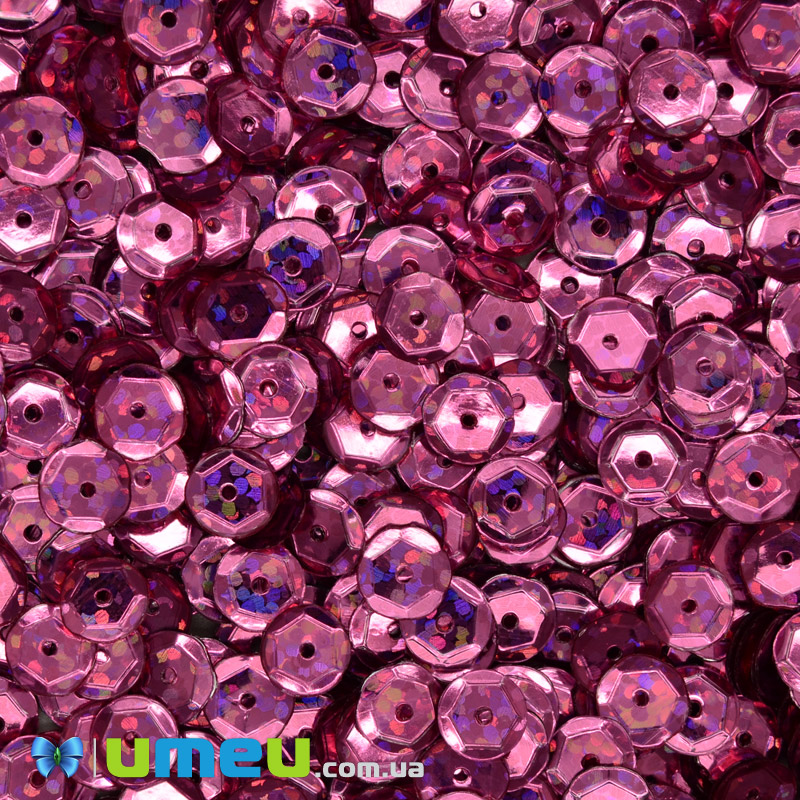 Пайетки Китай круглые граненые, 6,5 мм, Малиновые АВ (PAI-048063) / 1 уп (5 г)