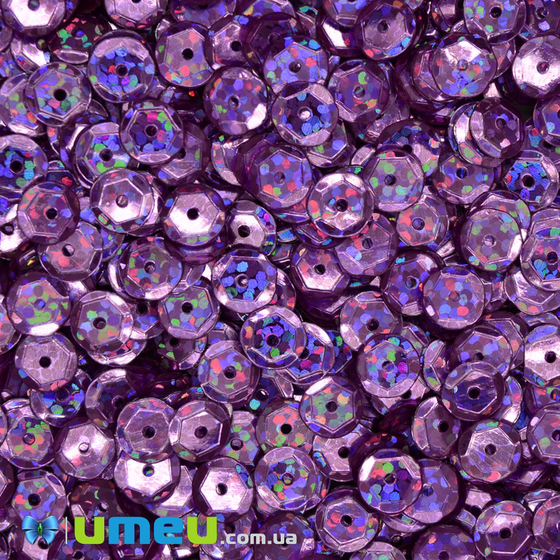 Пайетки Китай круглые граненые, 6,5 мм, Сиреневые АВ (PAI-048065) / 1 уп (5 г)