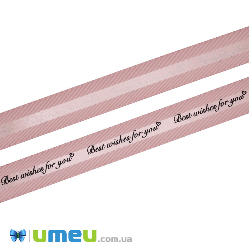 Репсовая лента Best wishes for you, 25 мм, Пудровая (LEN-048582) /