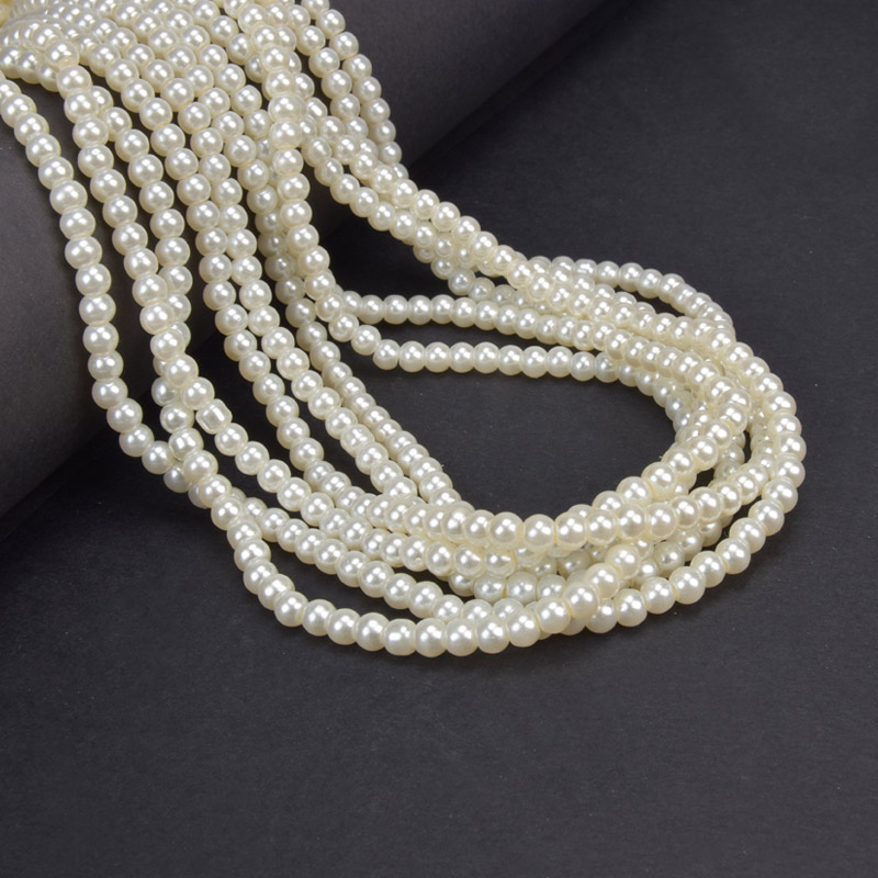 Бусины стеклянные Жемчуг, 4 мм, Кремовые, Круглые (BUS-048799) / 1 низка