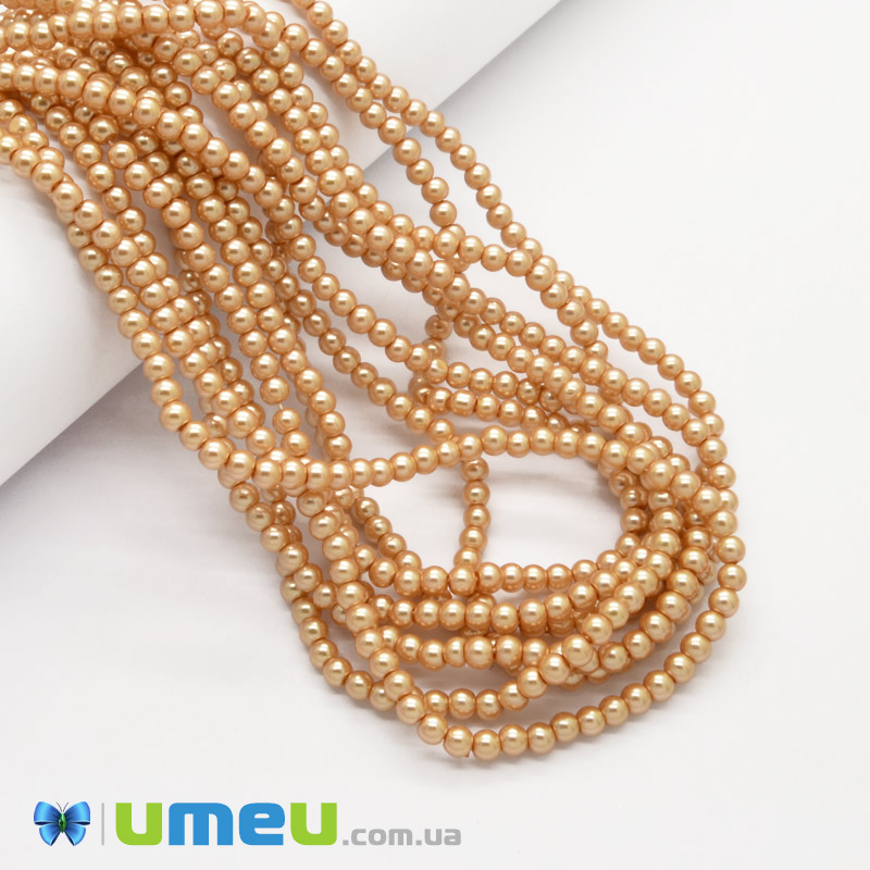 Бусины стеклянные Жемчуг, 4 мм, Бежевые, Круглые (BUS-048811) / 1 низка