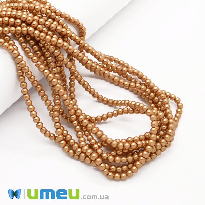 Бусины стеклянные Жемчуг, 4 мм, Коричневые, Круглые (BUS-048813) / 1 низка