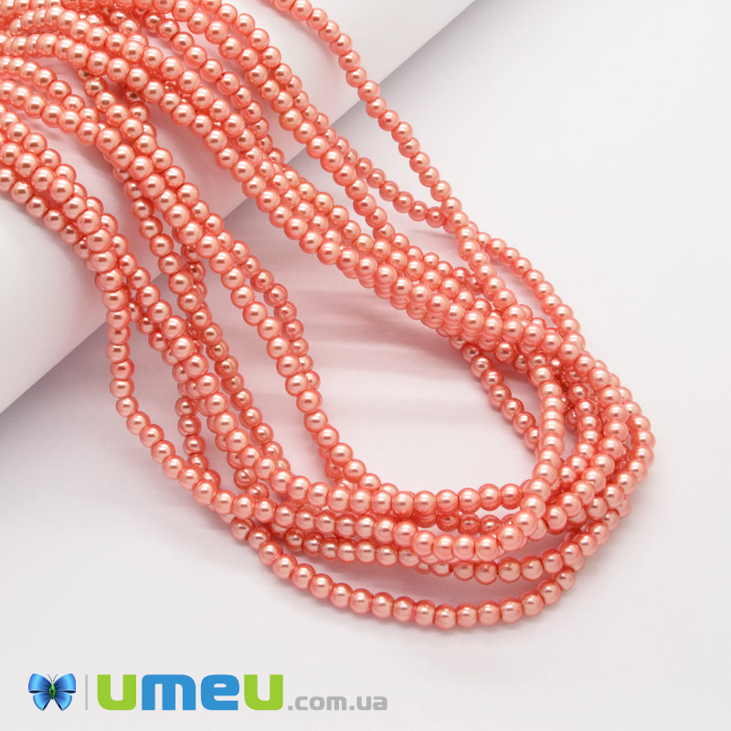 Бусины стеклянные Жемчуг, 4 мм, Персиковые, Круглые (BUS-048815) / 1 низка