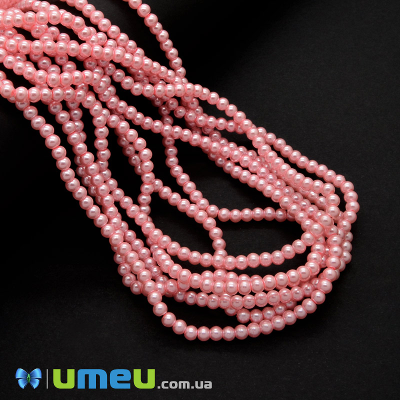 Бусины стеклянные Жемчуг, 4 мм, Розовые, Круглые (BUS-048817) / 1 низка