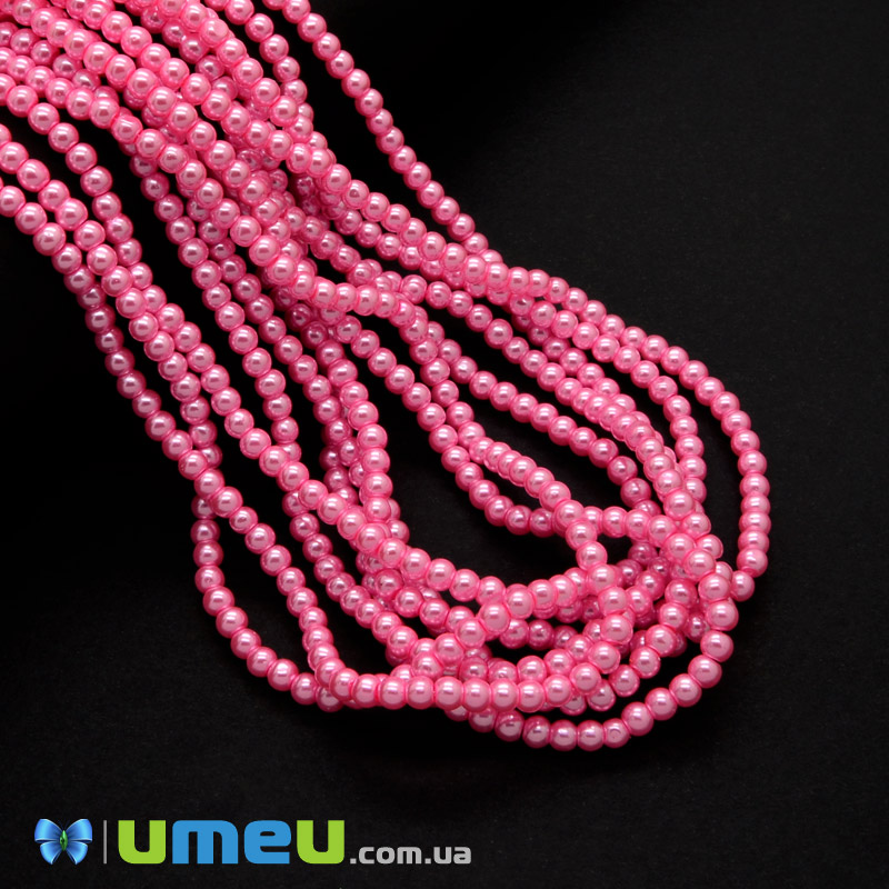 Бусины стеклянные Жемчуг, 4 мм, Розовые, Круглые (BUS-048818) / 1 низка