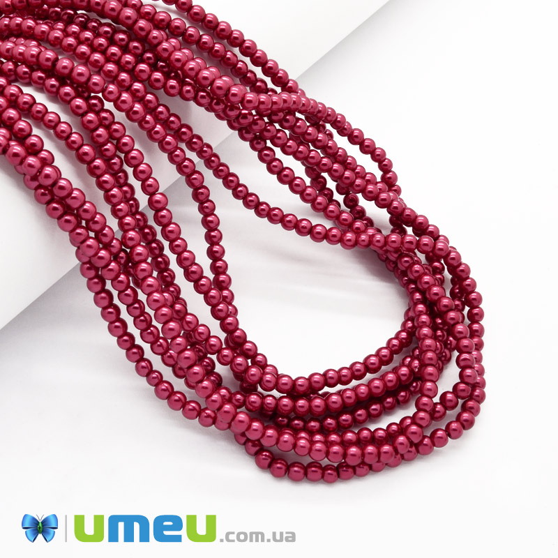 Бусины стеклянные Жемчуг, 4 мм, Красные темные, Круглые (BUS-048825) / 1 низка