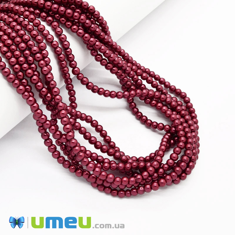 Бусины стеклянные Жемчуг, 4 мм, Бордовые, Круглые (BUS-048826) / 1 низка