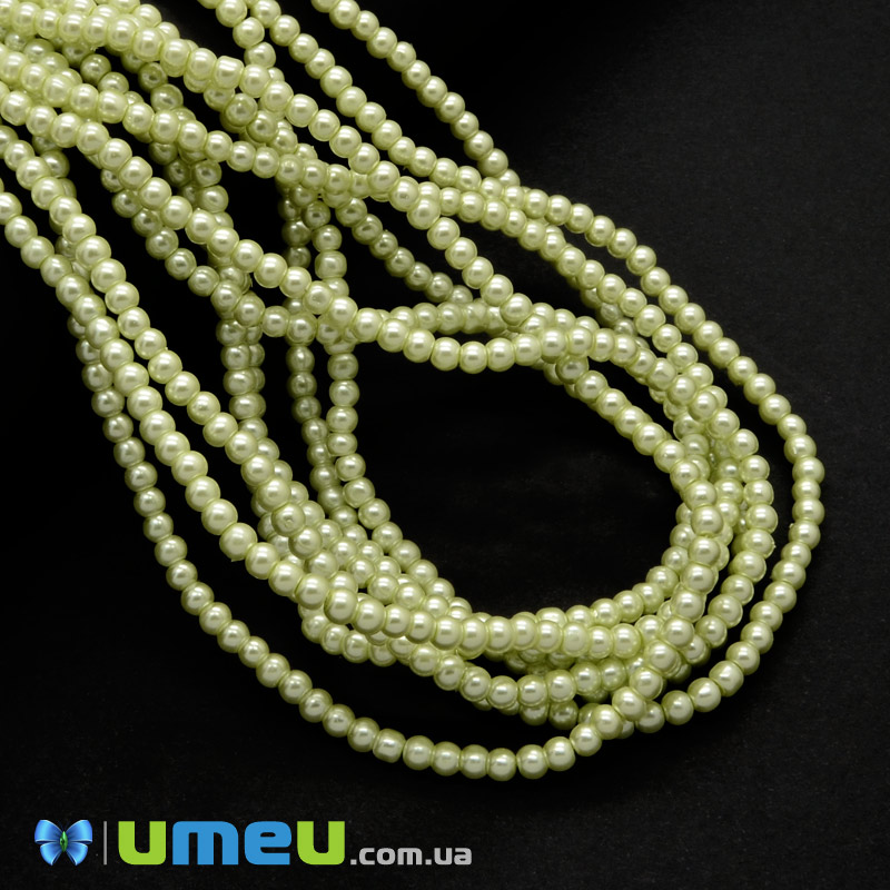 Бусины стеклянные Жемчуг, 4 мм, Салатовые, Круглые (BUS-048829) / 1 низка