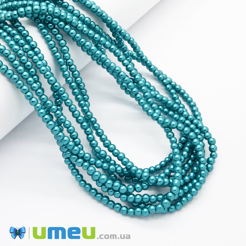 Бусины стеклянные Жемчуг, 4 мм, Бирюзовые, Круглые (BUS-048841) / 1 низка