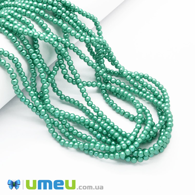 Бусины стеклянные Жемчуг, 4 мм, Бирюзовые, Круглые (BUS-048843) / 1 низка