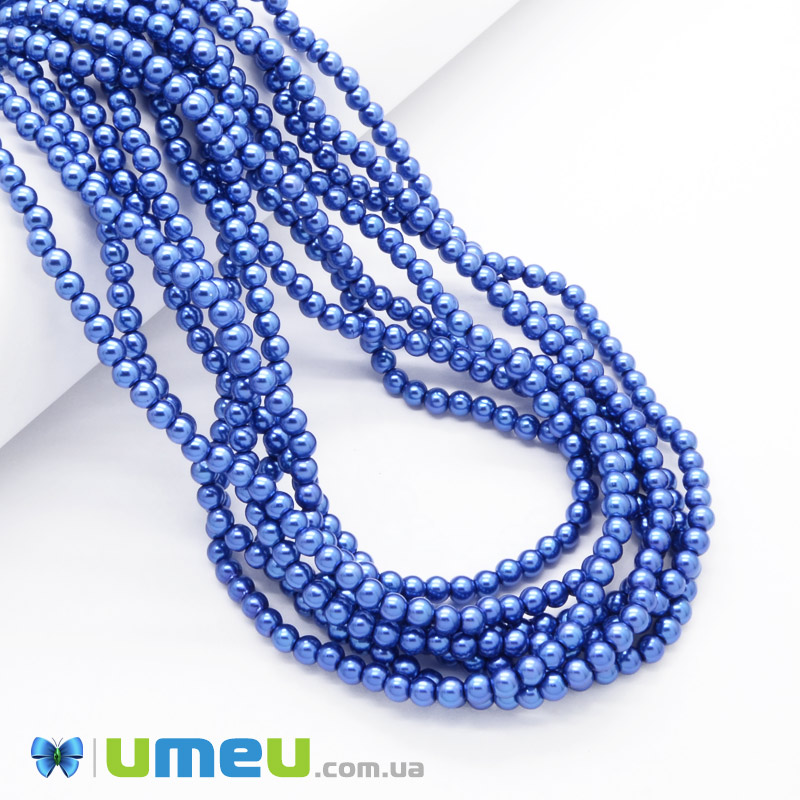 Бусины стеклянные Жемчуг, 4 мм, Синие, Круглые (BUS-048849) / 1 низка