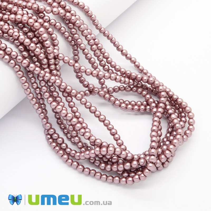 Бусины стеклянные Жемчуг, 4 мм, Пудровые, Круглые (BUS-048861) / 1 низка