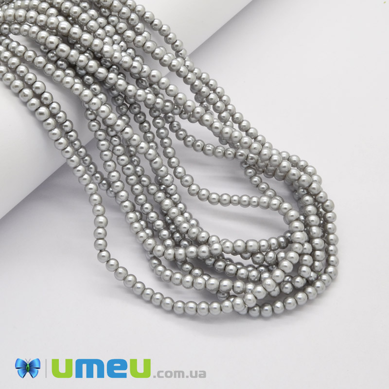 Бусины стеклянные Жемчуг, 4 мм, Серые, Круглые (BUS-048864) / 1 низка