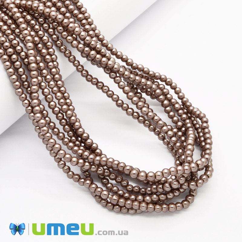 Бусины стеклянные Жемчуг, 4 мм, Коричневые, Круглые (BUS-048869) / 1 низка