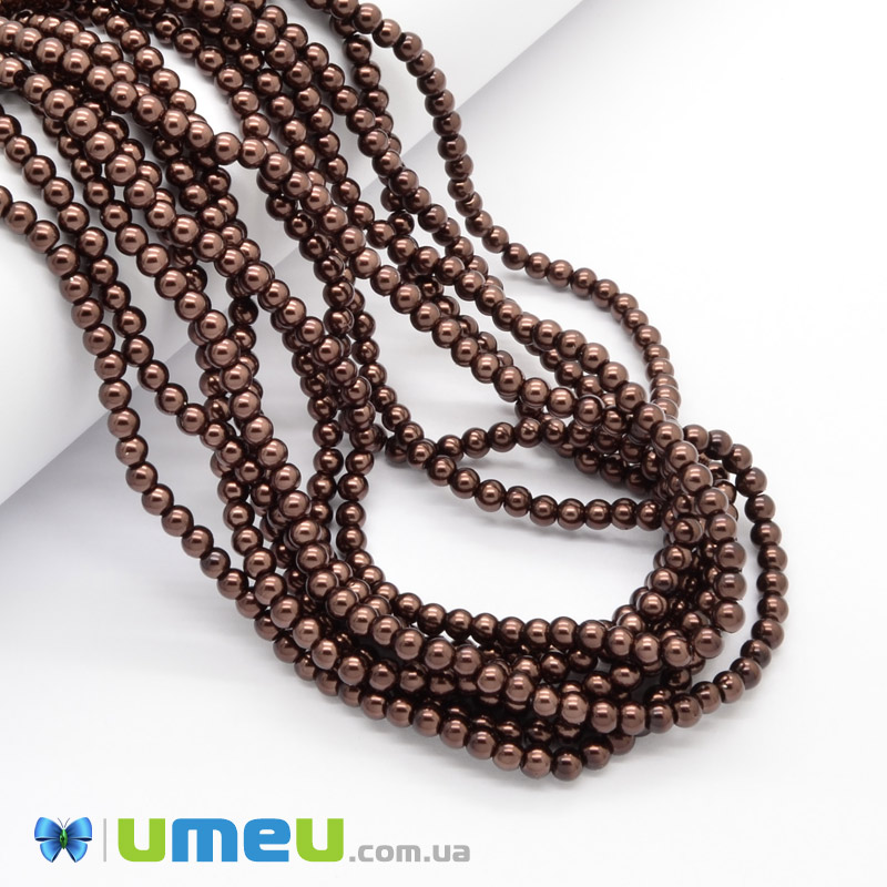 Бусины стеклянные Жемчуг, 4 мм, Коричневые, Круглые (BUS-048870) / 1 низка