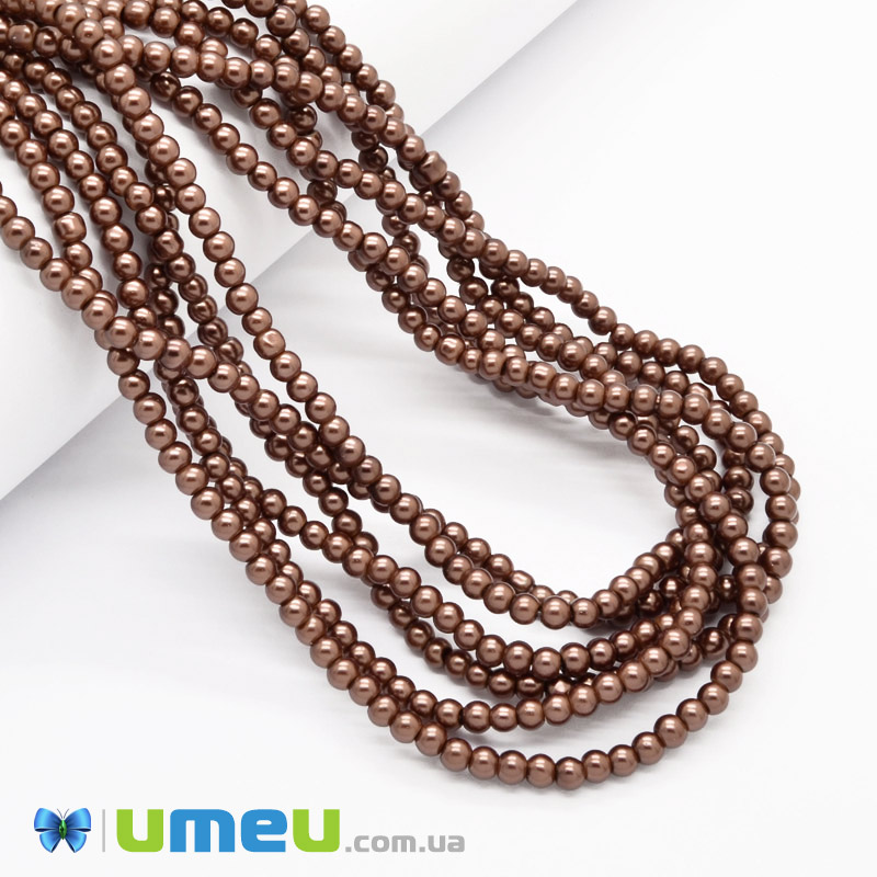 Бусины стеклянные Жемчуг, 4 мм, Коричневые, Круглые (BUS-048872) / 1 низка