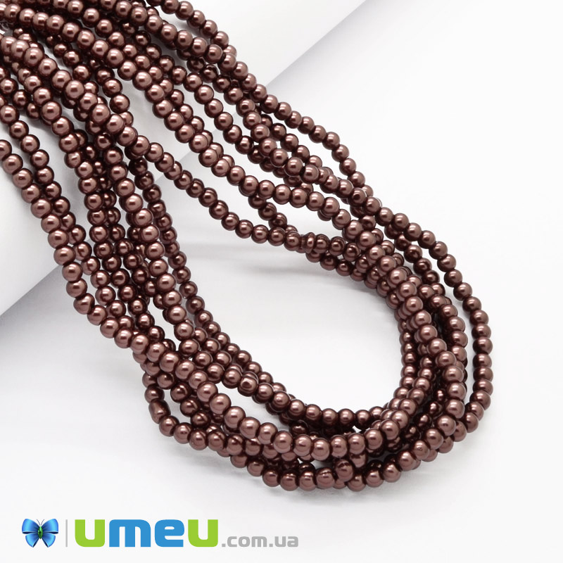 Бусины стеклянные Жемчуг, 4 мм, Коричневые, Круглые (BUS-048873) / 1 низка