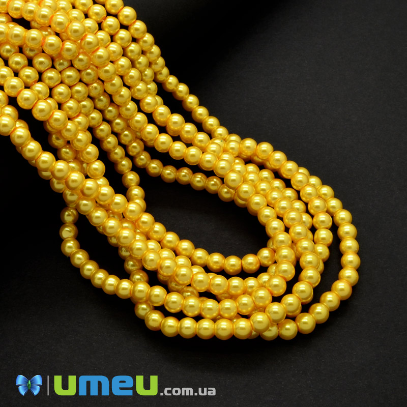 Бусины стеклянные Жемчуг, 6 мм, Желтые, Круглые (BUS-048883) / 1 низка