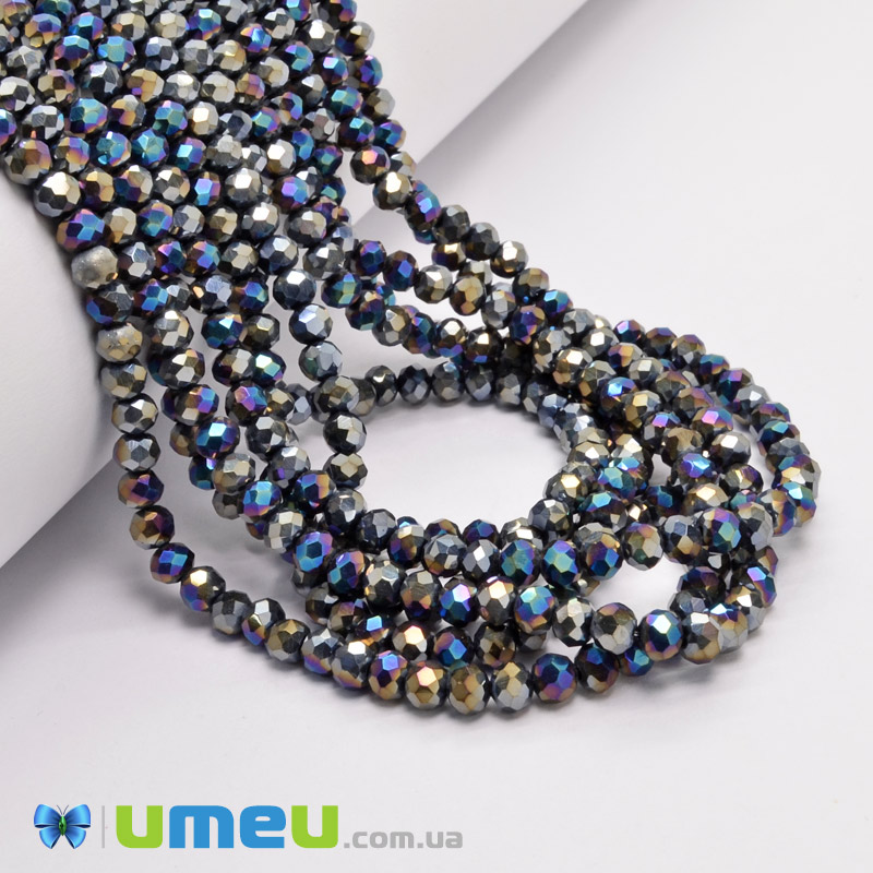 Бусины рондели, 4х3 мм, Ирис AB (BUS-049010) / 1 низка