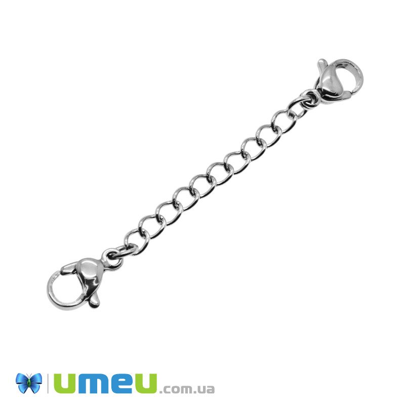 Цепь-удлинитель из нерж. стали с карабинами, 5 см, Темное серебро, 4х3 мм (ZEP-049015) / 1 шт