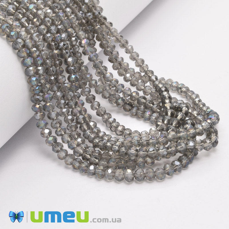 Бусины рондели, 4х3 мм, Серые АВ (BUS-049103) / 1 низка
