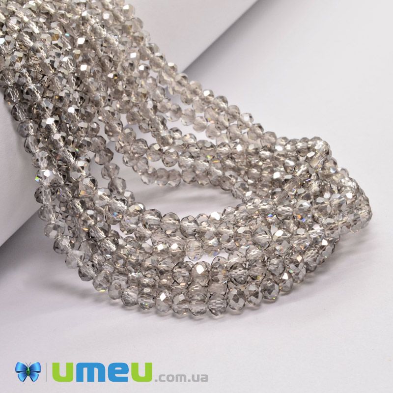 Бусины рондели, 4х3 мм, Серые (BUS-049223) / 1 низка