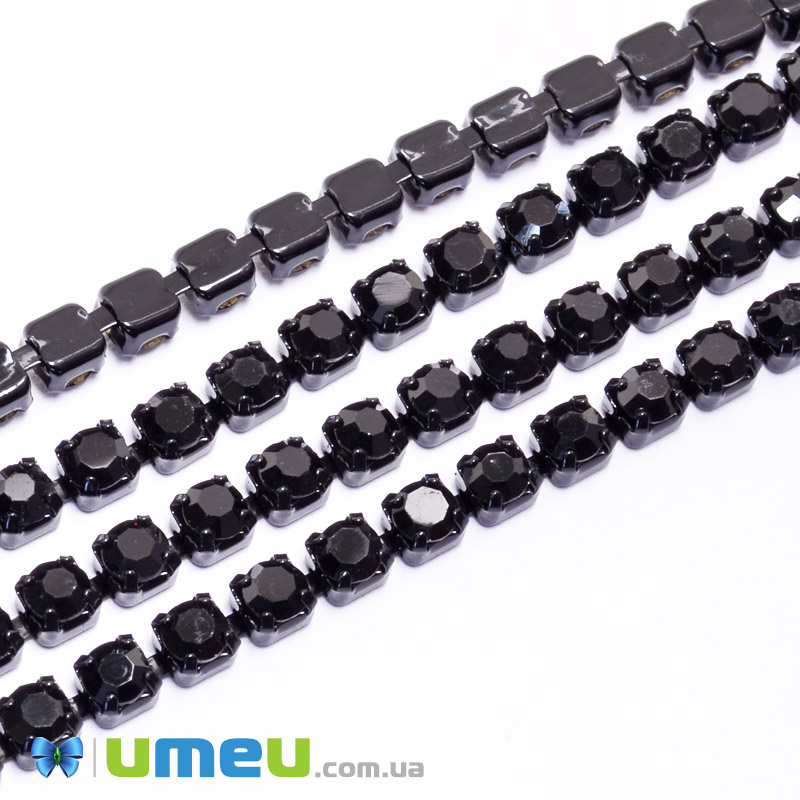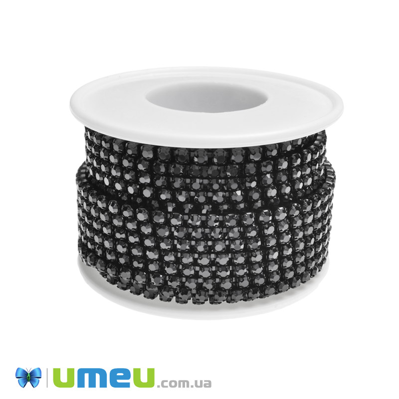 Стразовая цепь SS12 (2,8 мм), Черная, Стразы стеклянные черные (ZEP-049290) / 1 м