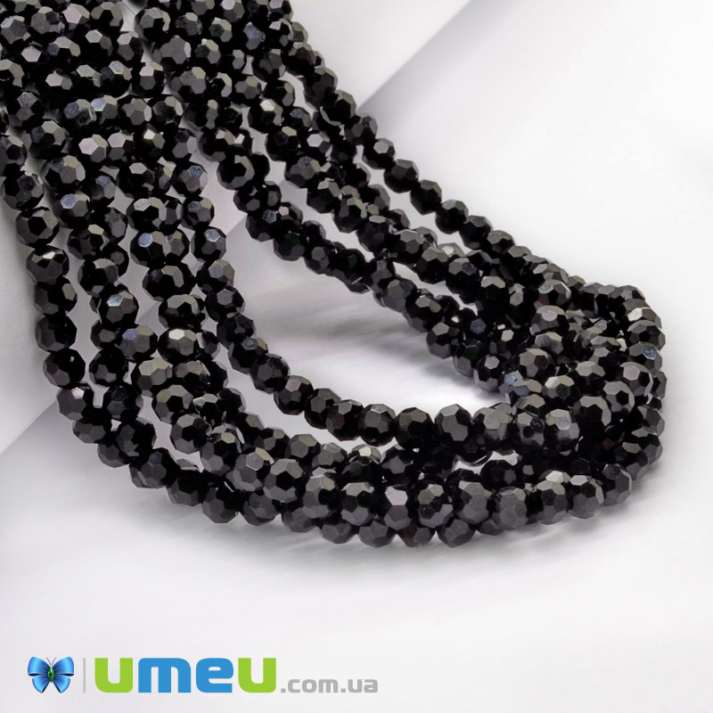 Бусины круглые граненые, 4 мм, Черные (BUS-049314) / 1 низка