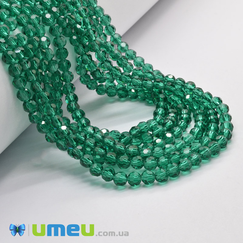 Бусины круглые граненые, 4 мм, Изумрудные (BUS-049317) / 1 низка