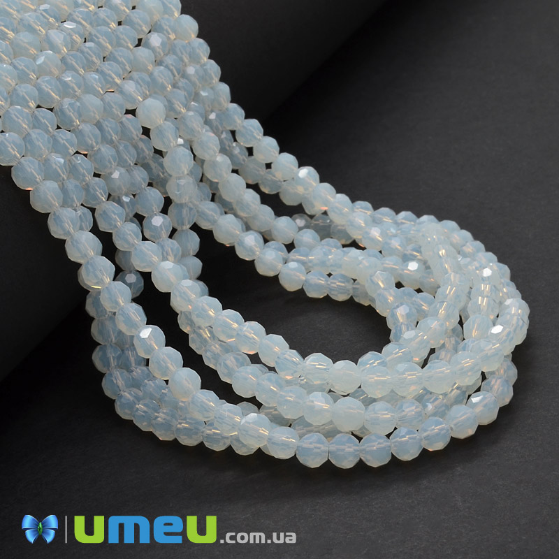 Бусины круглые граненые, 4 мм, Белые опал (BUS-049328) / 1 низка