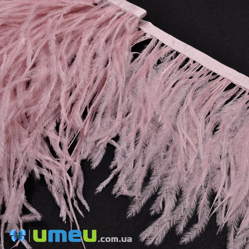 Перья страуса на ленте, 10-15 см, Пудровые (PER-049678) / 1 м