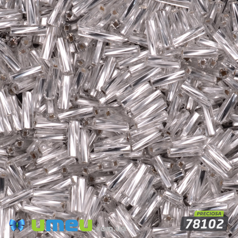 Бисер чешский Стеклярус 3, №78102, Серебристый блестящий скрученный, 7 мм (BIS-050535) / 1 уп (5 г)