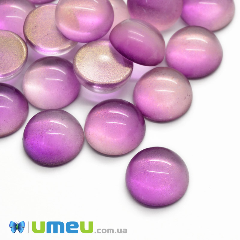 Кабошон стеклянный, 14 мм, Золотисто-малиновый (KAB-050688) / 1 шт