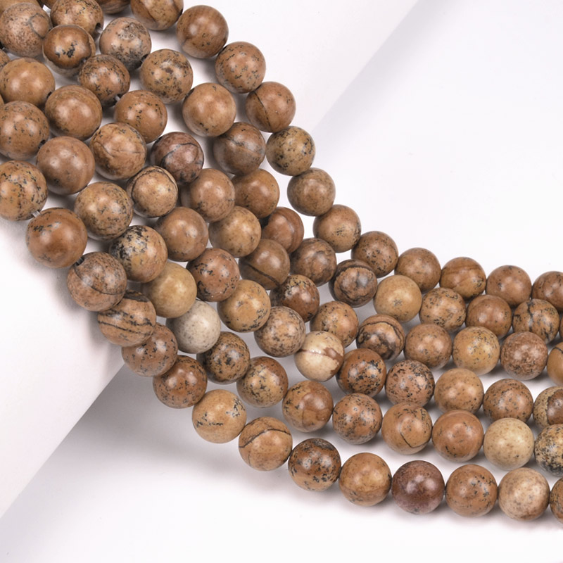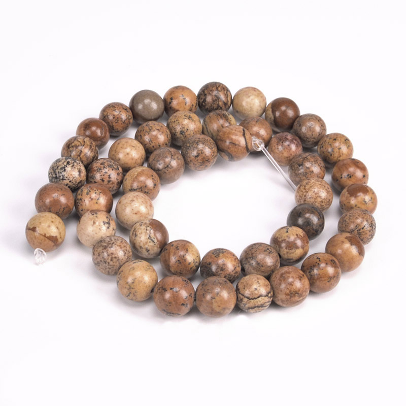 Бусины Яшма пейзажная, Натур. камень, 8,5 мм, Круглые (BUS-051679) / 1 низка