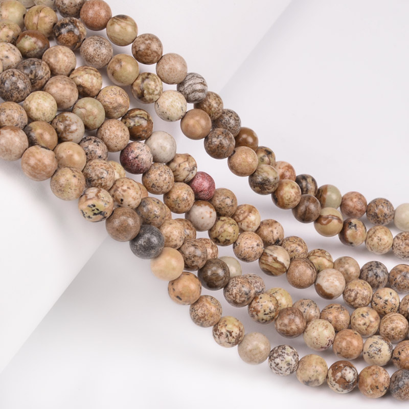Бусины Яшма пейзажная, Натур. камень, 6,5 мм, Круглые (BUS-051745) / 1 низка