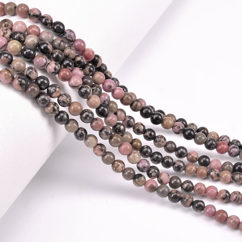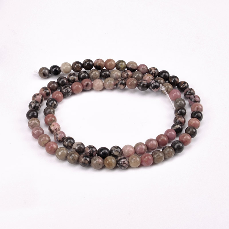 Бусины Родонит, Натур. камень, 4,5 мм, Круглые (BUS-051797) / 1 низка