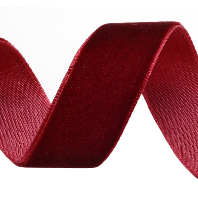 Лента бархатная, 25 мм, Бордовая (LEN-052253) / 1 м