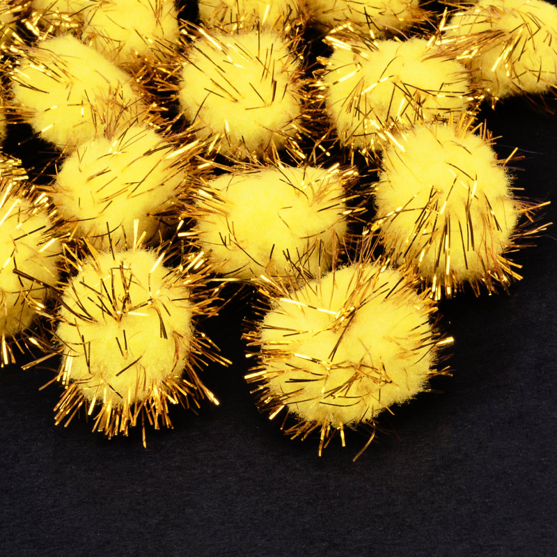 Помпоны с люрексом 2,5 см, Желтые (DIF-052582) / 1 уп (10 шт)