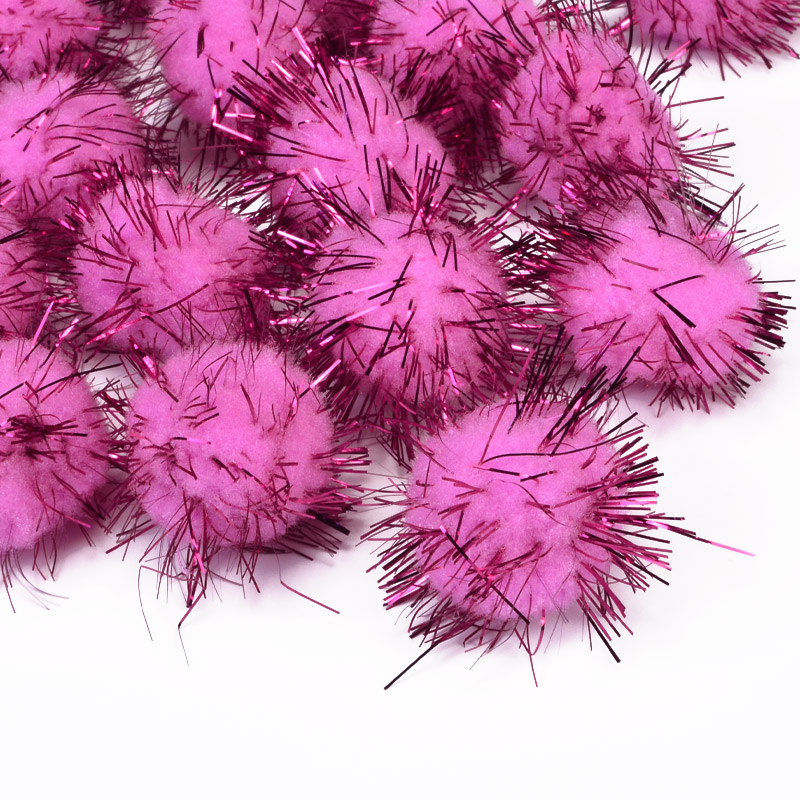 Помпоны с люрексом 2,5 см, Розовые (DIF-052583) / 1 уп (10 шт)