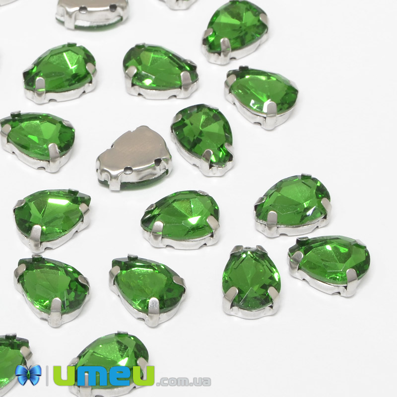 Шатон капля 14х10 мм, Темное серебро, Зеленый (KAB-052597) / 1 шт