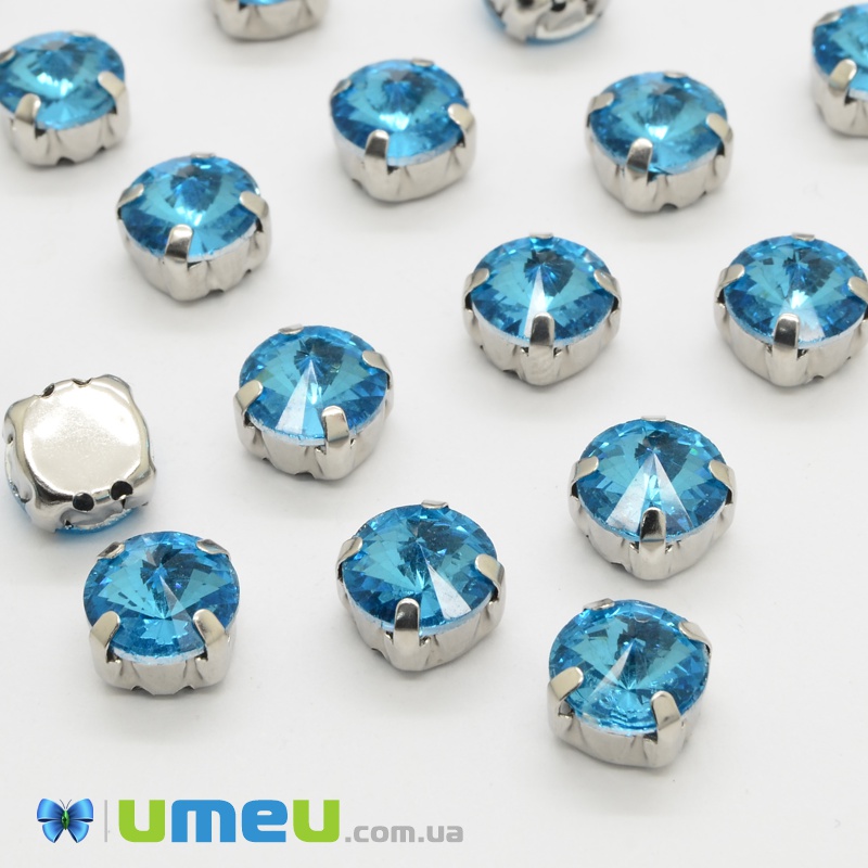 Шатон круглый 14 мм, Темное серебро, Голубой (KAB-052712) / 1 шт