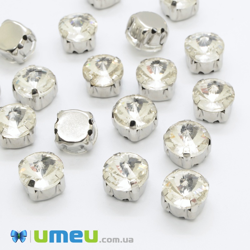 Шатон круглый 14 мм, Темное серебро, Белый (KAB-052722) / 1 шт