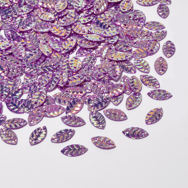 Пайетки Китай Листики, 8,5х4,5 мм, Сиреневые АВ (PAI-052966) / 1 уп (5 г)