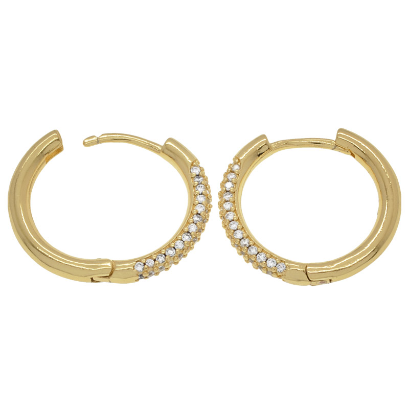 Серьги-кольца Huggie, Латунь с покрытием 18 kt, Стразы куб. цирконий, 20,5х20х2,5 мм (OSN-053093) / 1 уп (2 шт)